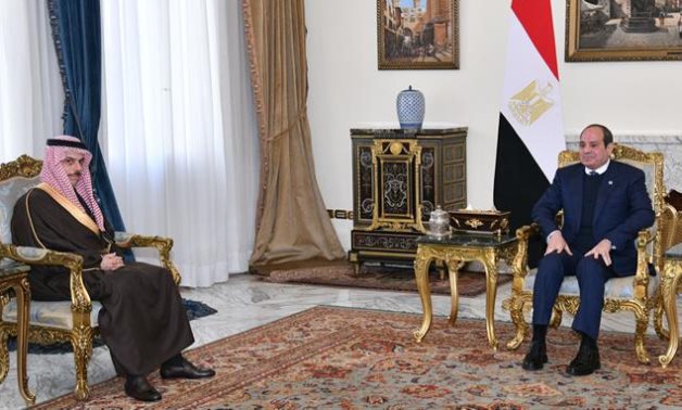 President Abdel Fattah El-Sisi received Minister of Foreign Affairs of the Kingdom of Saudi Arabia, Prince Faisal bin Farhan Al Saud. They discussed peaceful solutions to regional crises. The meeting was also attended by Minister of Foreign Affairs, Emigration and Egyptian Expatriates, Dr. Badr Abdelatty; Advisor to the Saudi Minister of Foreign Affairs for Political Affairs, Prince Musab bin Mohammed Al-Farhan; as well as Saudi Ambassador to Egypt, Saleh bin Eid Al-Husseini.