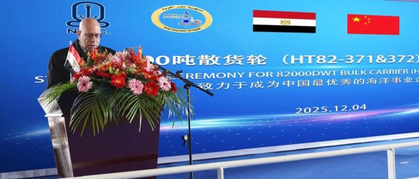The ceremony was attended by Mr. Mohamed Soliman Metwally, Managing Director of the National Navigation Company, representing Lieutenant General Kamel El-Wazir, Deputy Prime Minister for Industrial Development and Minister of Industry and Transport, along with senior executives from the Hantong Shipyard, headed by Mr. Ming Chengjun, Chairman of the Board.